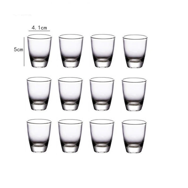 Add a touch of elegance to your spirits collection with this set of 12 small wine glasses, available in 20ml, 26ml, and 35ml sizes. Featuring a thick bottom for added durability and a sleek, transparent design, these glasses are perfect for serving Baijiu, vodka, foreign wine, or other fine spirits. The light luxury style enhances any occasion, whether you're entertaining guests or enjoying a quiet evening. Designed for both style and functionality, these glasses elevate your drinking experience with a touch of sophistication. Ideal for connoisseurs of fine spirits and those who appreciate high-quality glassware.