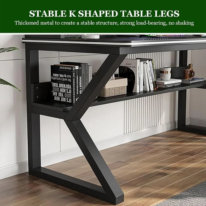 - 【Sturdy Computer Table with metal legs】Thicker computer desktop and panel material is engineered wood which is waterproof, effortless to clean and scratch-resistant, strong enough to support heavy weights up to 500lbs. The K-shaped metal legs make the table more stable.You can use it for many years.