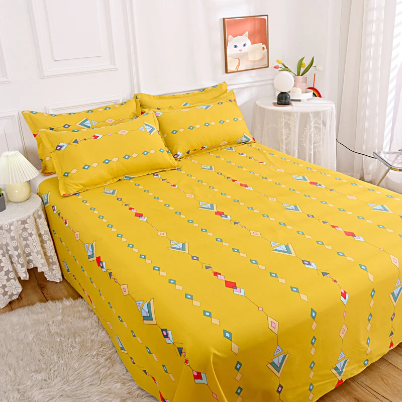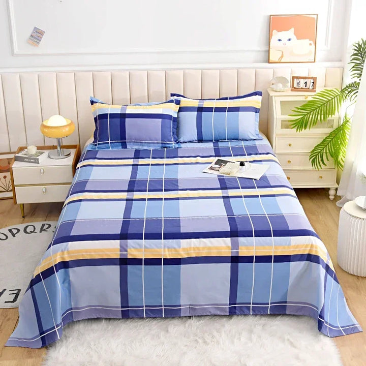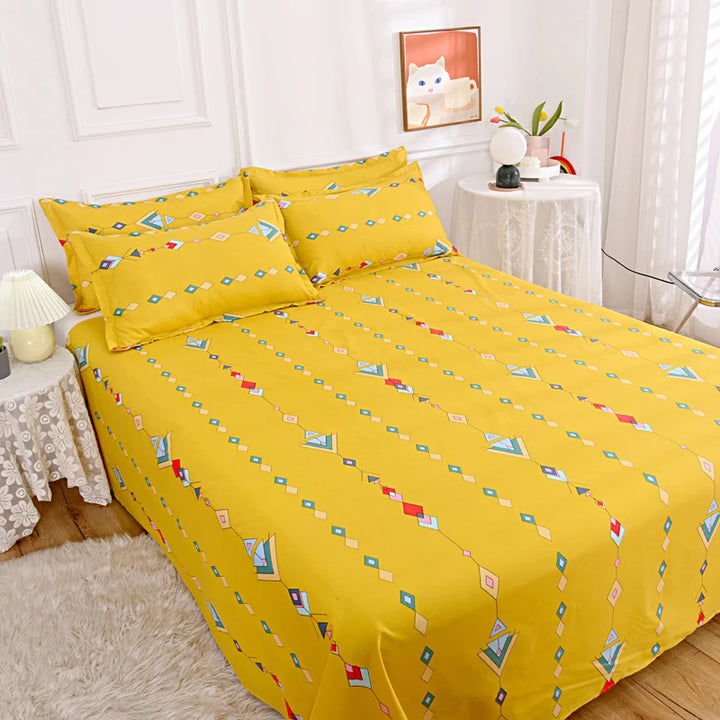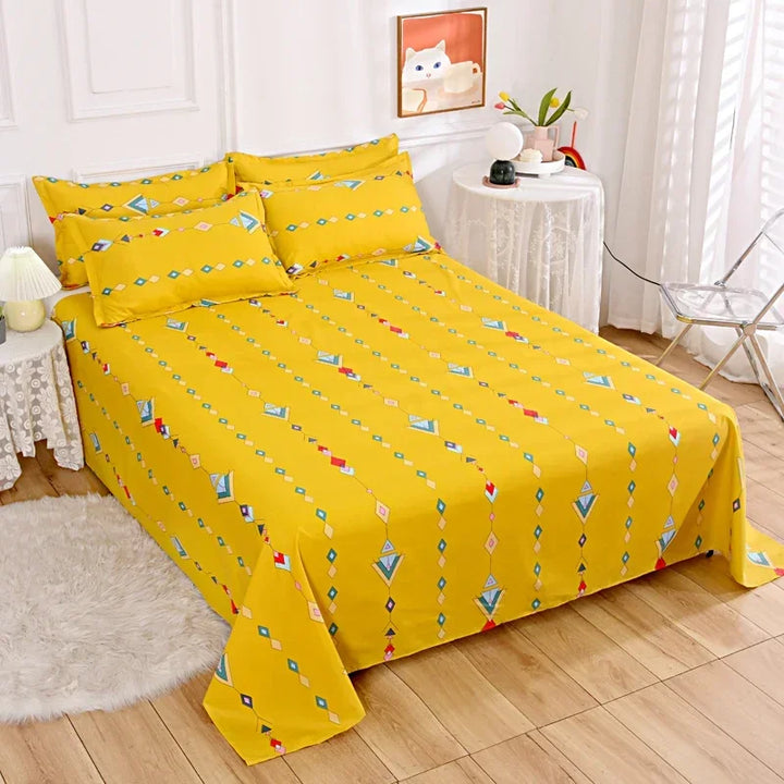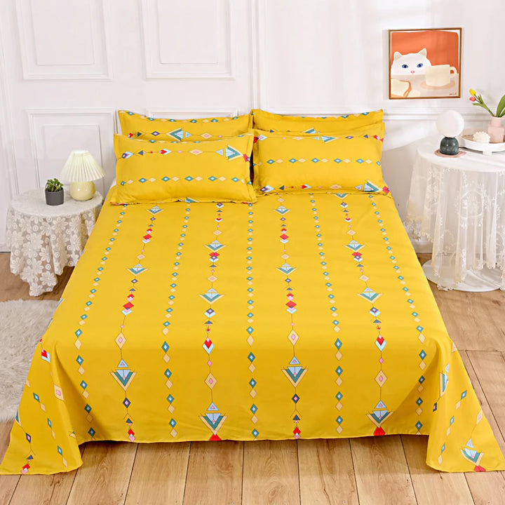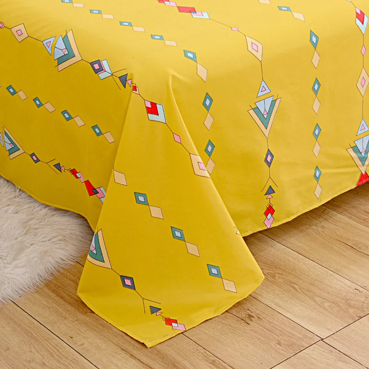 Elevate your bedroom with this stylish 3-piece Abstract Geometric Pattern Bed Sheet Set. The modern design features bold geometric shapes, adding a dynamic and artistic touch to your space. Made from soft, breathable fabric, this bedding set ensures a comfortable and restful sleep. The set includes a flat sheet and two pillowcases, all crafted to fit Queen size beds. Perfect for adding a contemporary flair to your bedroom while maintaining ultimate comfort, this bedding set is a great choice for those who appreciate both design and functionality in their home decor.
