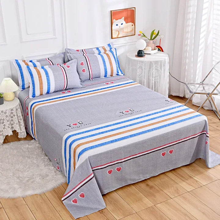 Abstract Geometric Pattern 3-Piece Bed Sheet Set – Soft & Comfortable Flat Sheets with Pillowcases, Queen Size Bedding Set