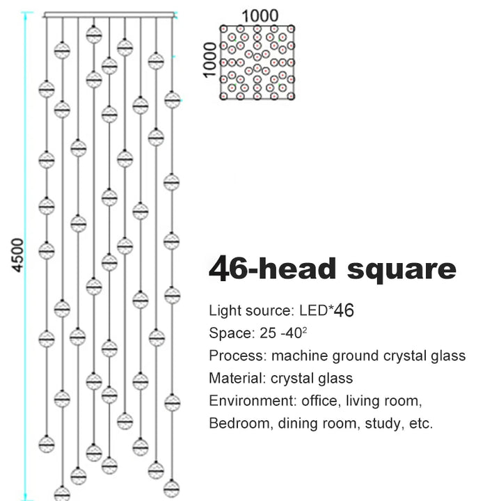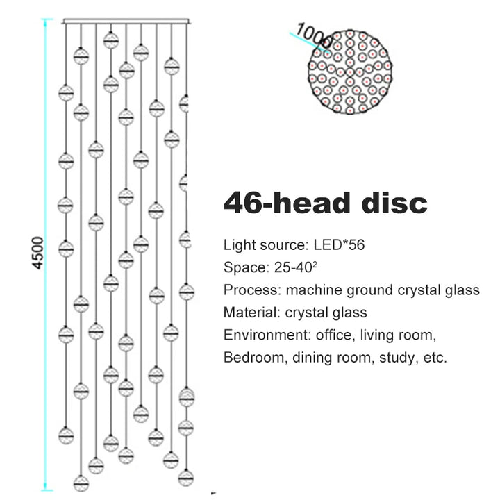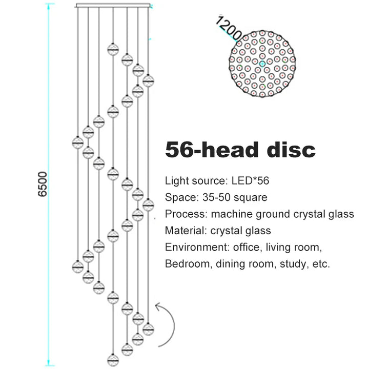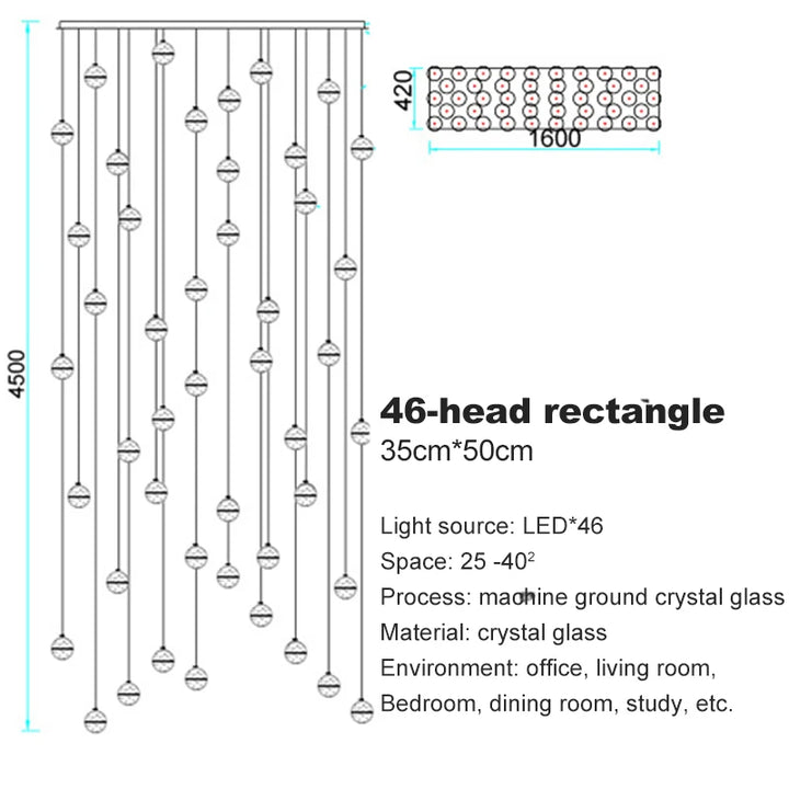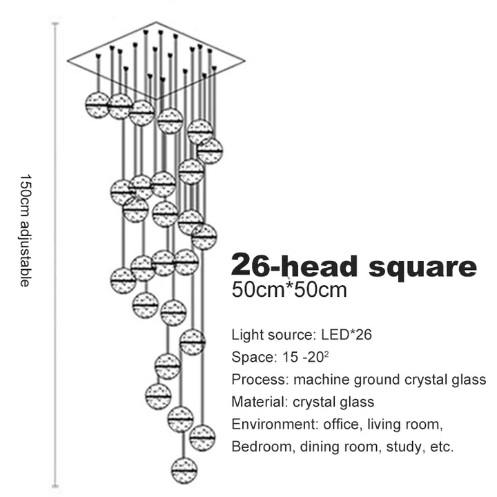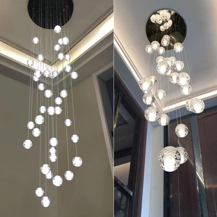 These Villa Staircase Pendant Lights featuring hanging crystal glass balls are an exquisite addition to any space, blending elegance with modern design. Perfect for enhancing the atmosphere of a home, business office, or restaurant, these pendant lights create a luxurious, sparkling effect as light refracts off the crystal surfaces. The graceful design complements both contemporary and classic decor, making them ideal for staircases, entryways, or dining areas. Their ambient glow adds sophistication and warmth, transforming any environment into a stylish, welcoming space. A truly timeless piece, these lights elevate both residential and commercial interiors.