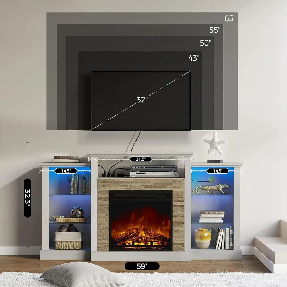Create a cozy, stylish, and functional focal point in your living room with this Fireplace TV Stand. Designed to fit 32" to 65" TVs, this entertainment center combines modern convenience with a warm, inviting atmosphere. Featuring an electric fireplace with adjustable LED lights, it provides both ambiance and warmth, allowing you to enjoy the relaxing flame effect without the need for actual fire.