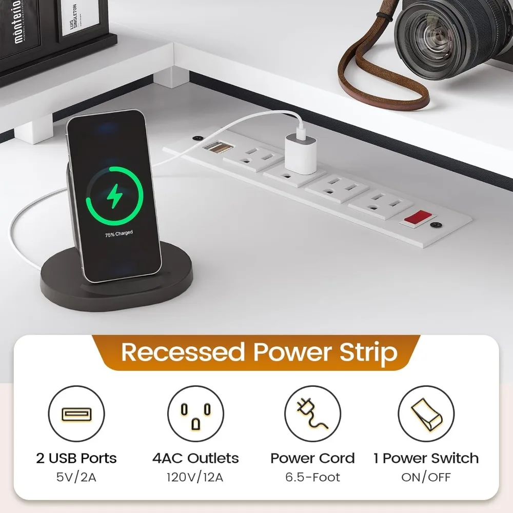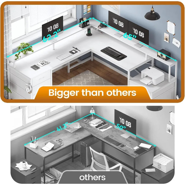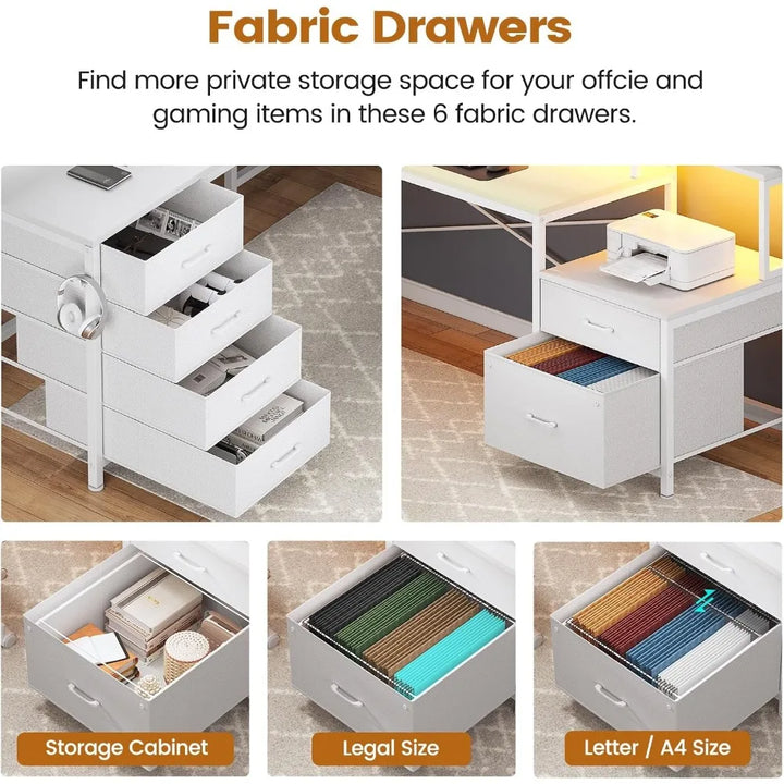 Gaming Computer Desk, with 6 Drawers, with LED Lights, Power Outlets, Monitor Stand and Shelf