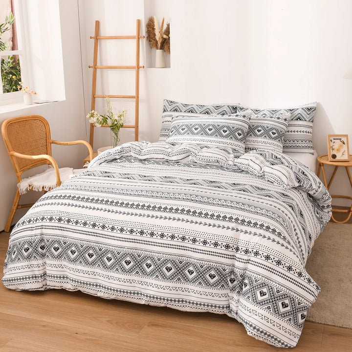Bring a touch of contemporary elegance to your bedroom with this Nordic-style geometric duvet cover set. Featuring sleek wave stripes and modern classic lines, this bedding set is designed to complement a variety of décor styles, from modern to minimalist. Made from soft, high-quality fabric, it offers a cozy and luxurious feel, perfect for a restful night’s sleep. The King size ensures a perfect fit for larger beds, making it an ideal choice for both bedrooms and hotel-inspired spaces. Whether you're updating your own home or adding a touch of sophistication to a guest room, this duvet cover set is the perfect blend of style and comfort.