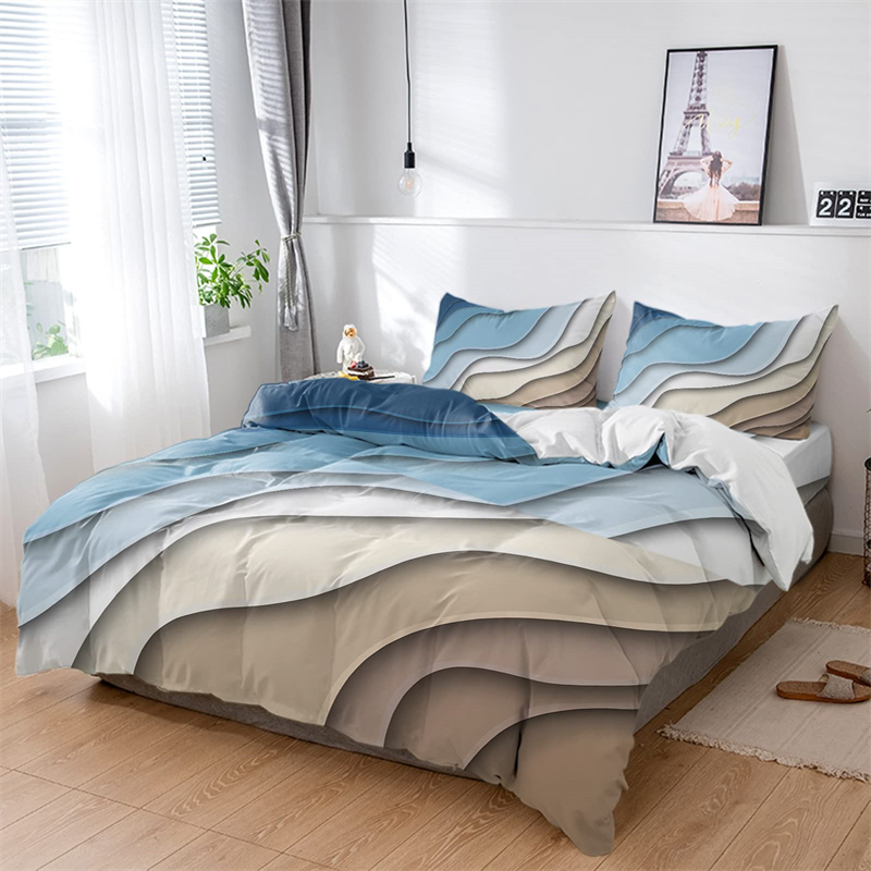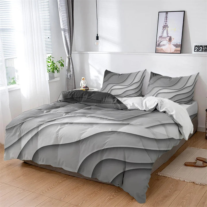Modern Gradient Geometric Abstract Ripple Art Duvet Cover Set – Soft Microfiber Bedding for Twin & King Sizes