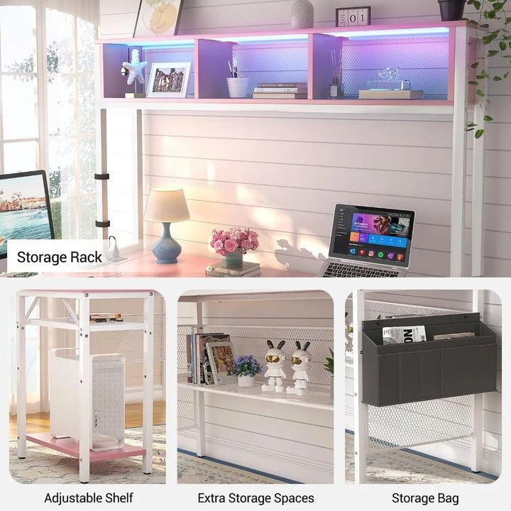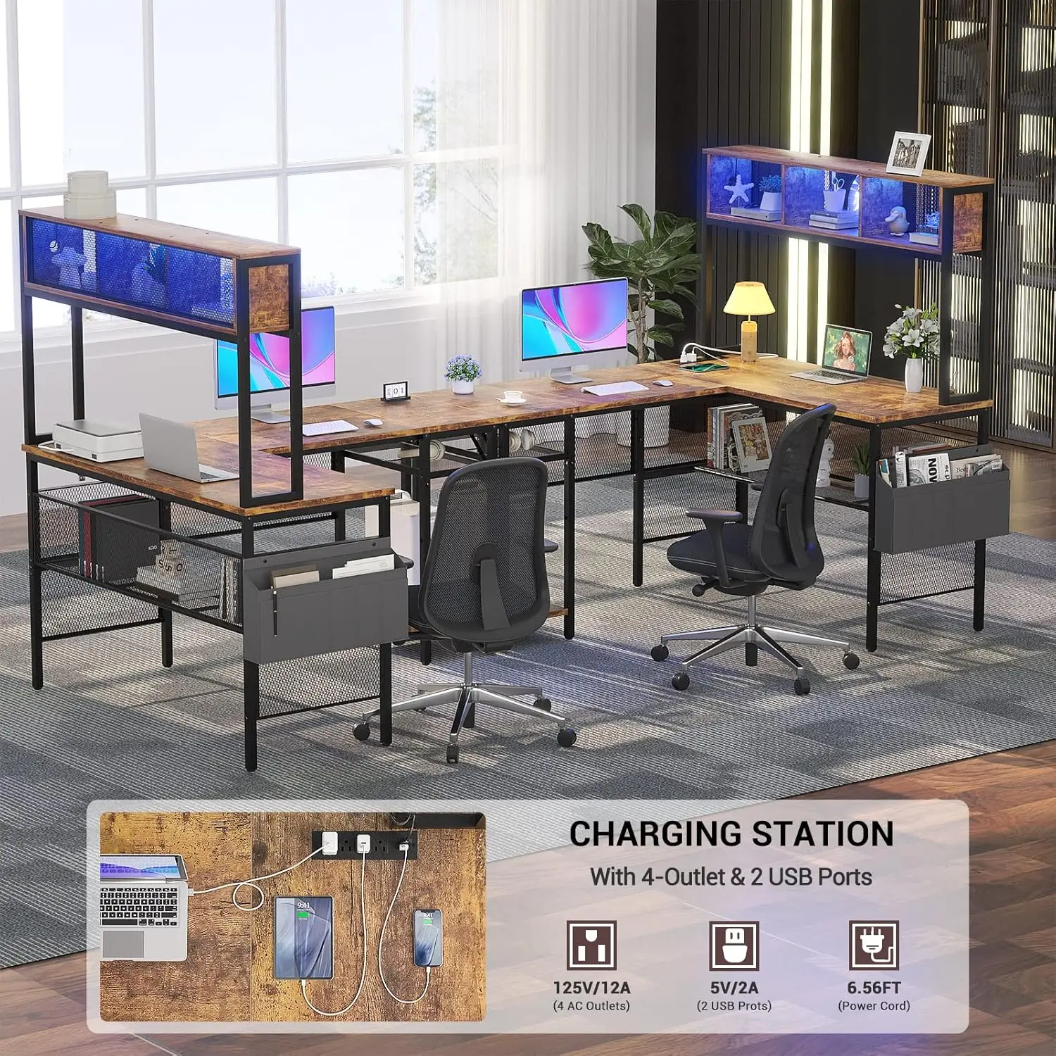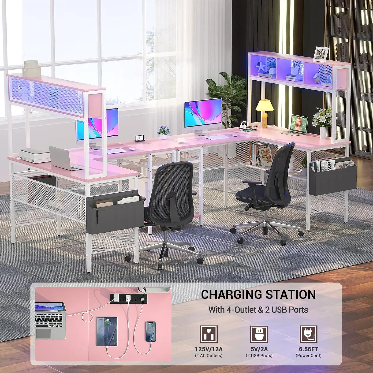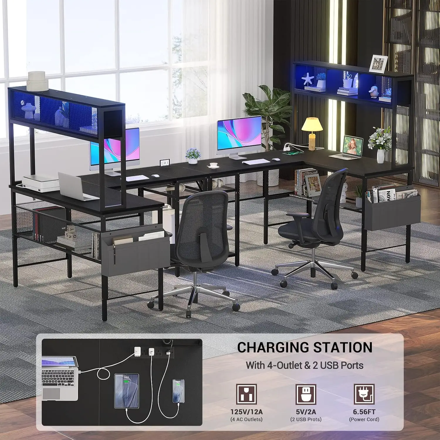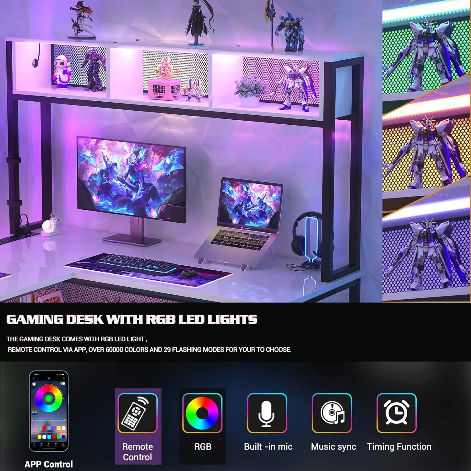 L Shaped Computer Desk – LED Strip and Power Outlets, Reversible L-Shaped Corner Desk with Storage Shelves and Bag