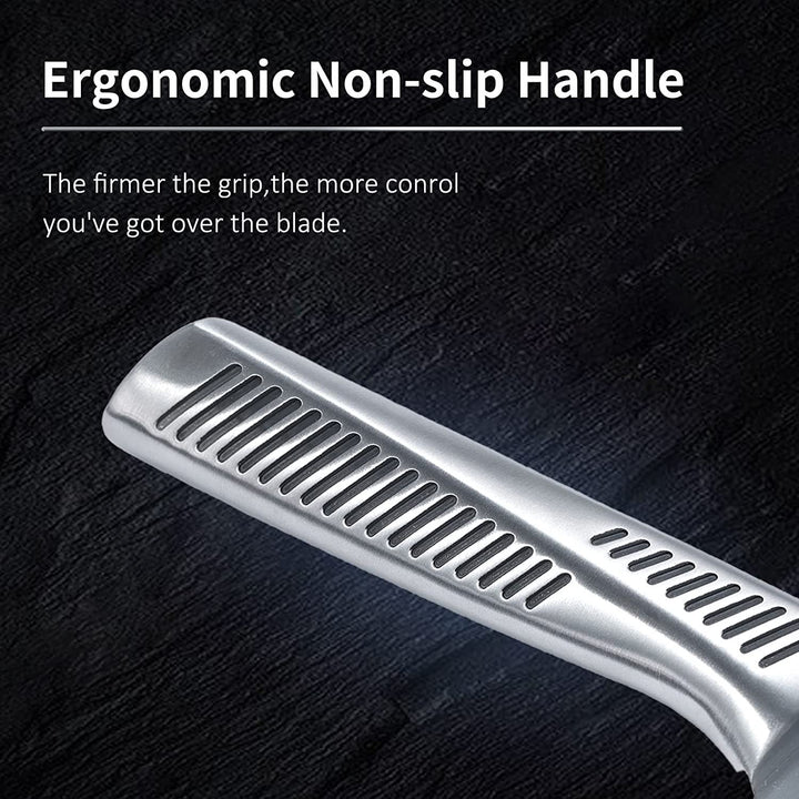 Ergonomic Hollow HandleStainless Steel Hollow Handle with a full tang knife blade provides maximum comfort and stability while cutting, which can enjoy cooking more faster ans easier. Ergonomic handle is made of stainless steel which is comfortable for you use |