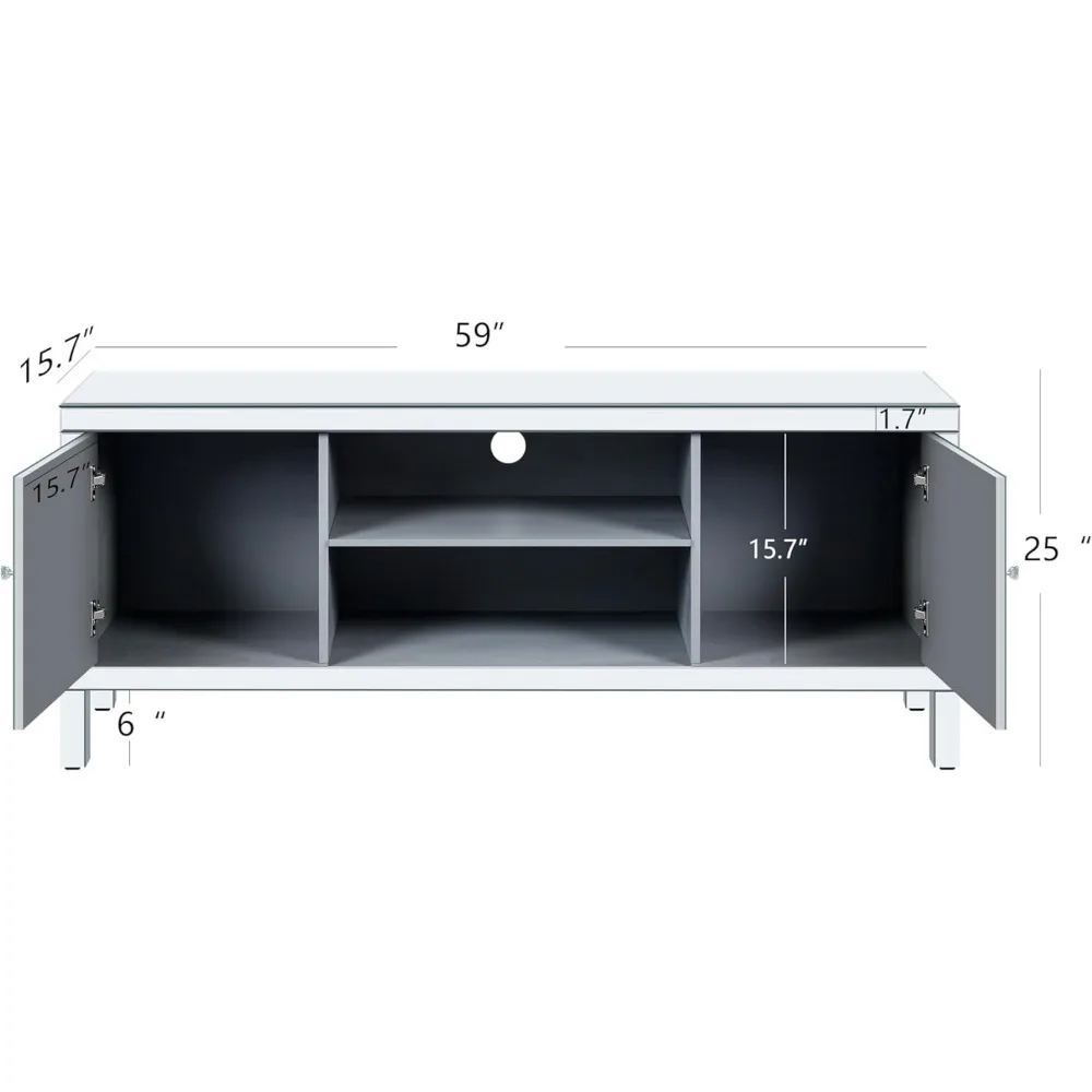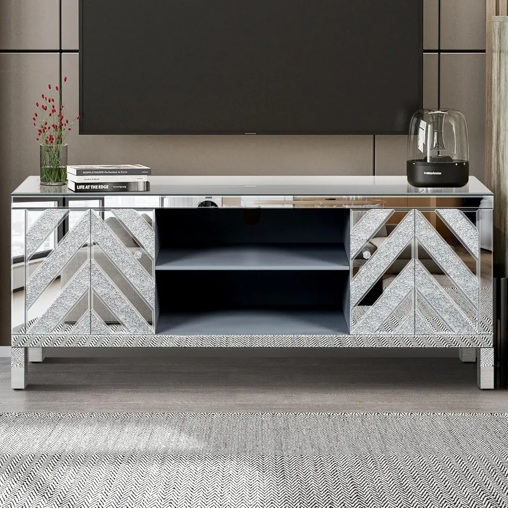 Whether you're hosting a movie night or simply relaxing, this mirrored TV stand offers both style and functionality, elevating the look of your living space while keeping everything organized and within reach. Ideal for those seeking a luxurious, space-saving solution with a bit of sparkle and shine.