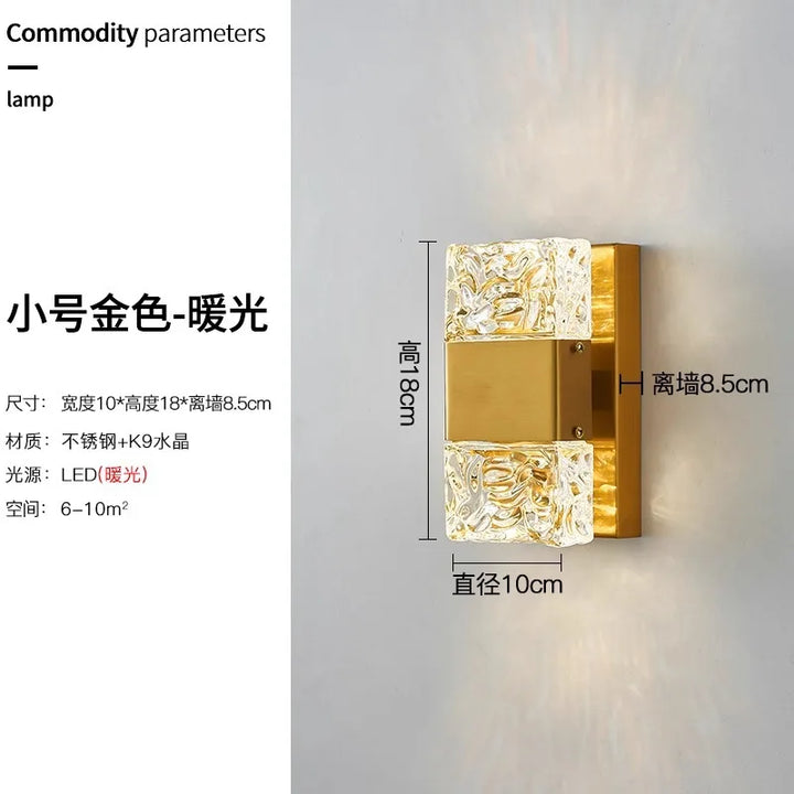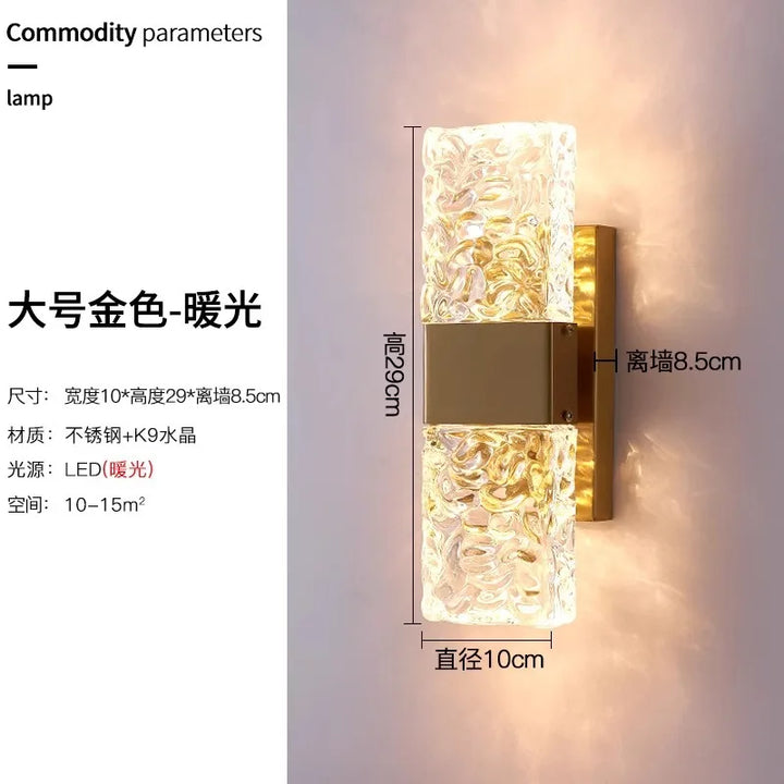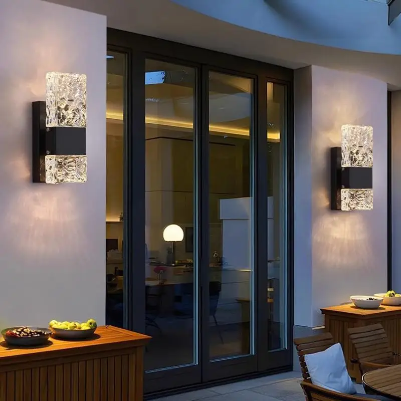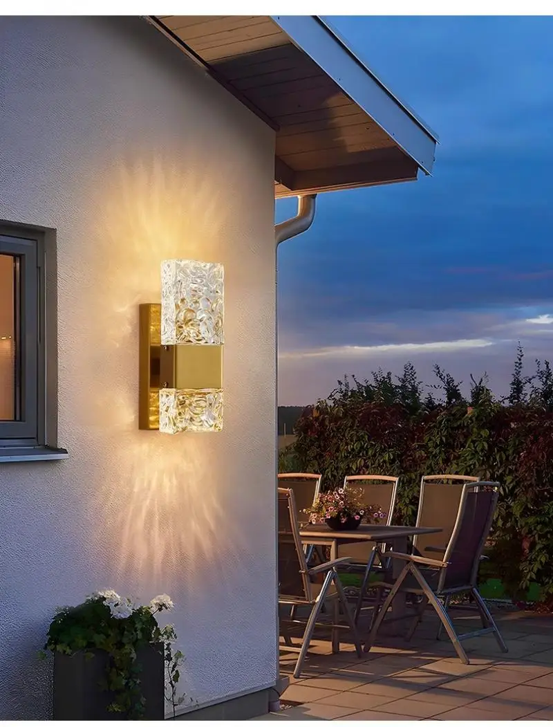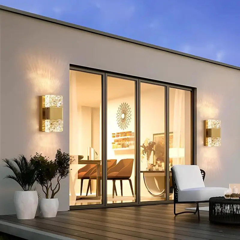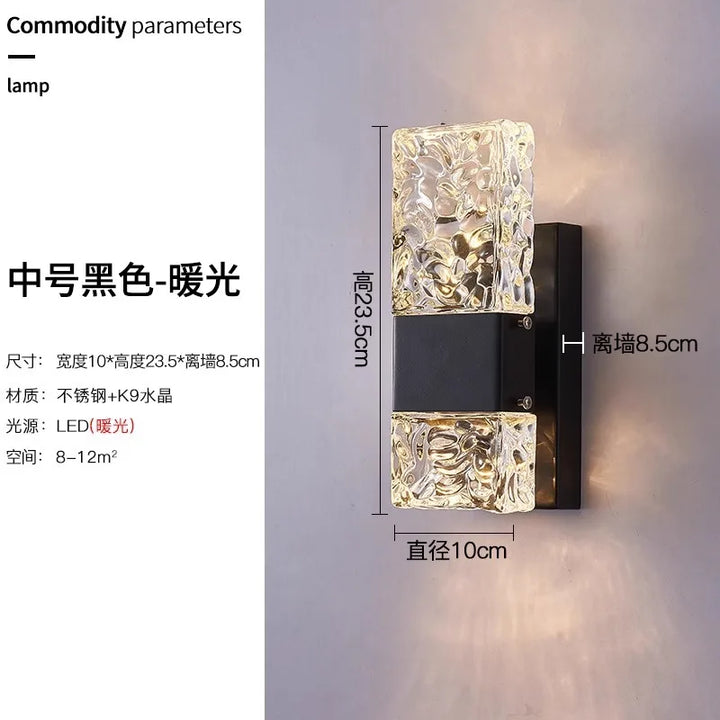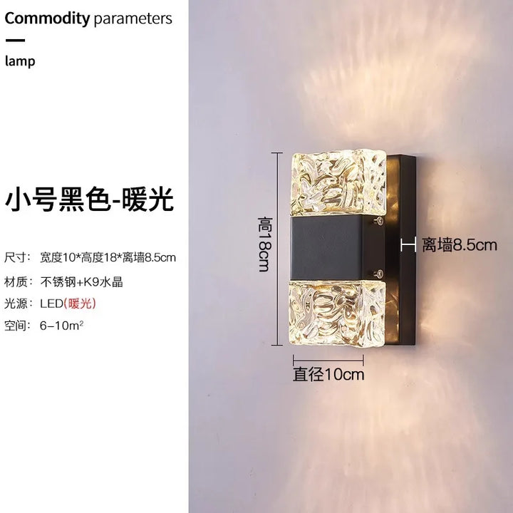 Outdoor Luxury Crystal Wall Lamp – Waterproof Garden Porch Lights, TV Background Corridor Staircase Glass Rectangle Wall Sconce