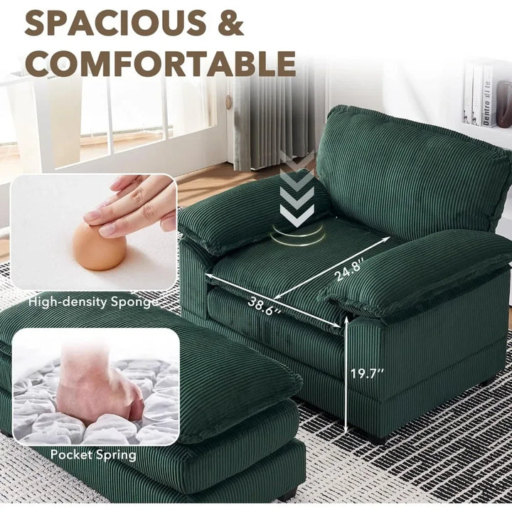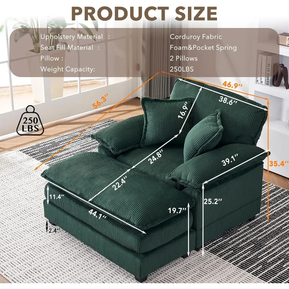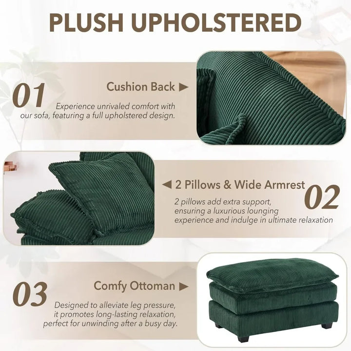 - Material: Corduroy fabric upholstery, high resilience sponge, solid wood frame