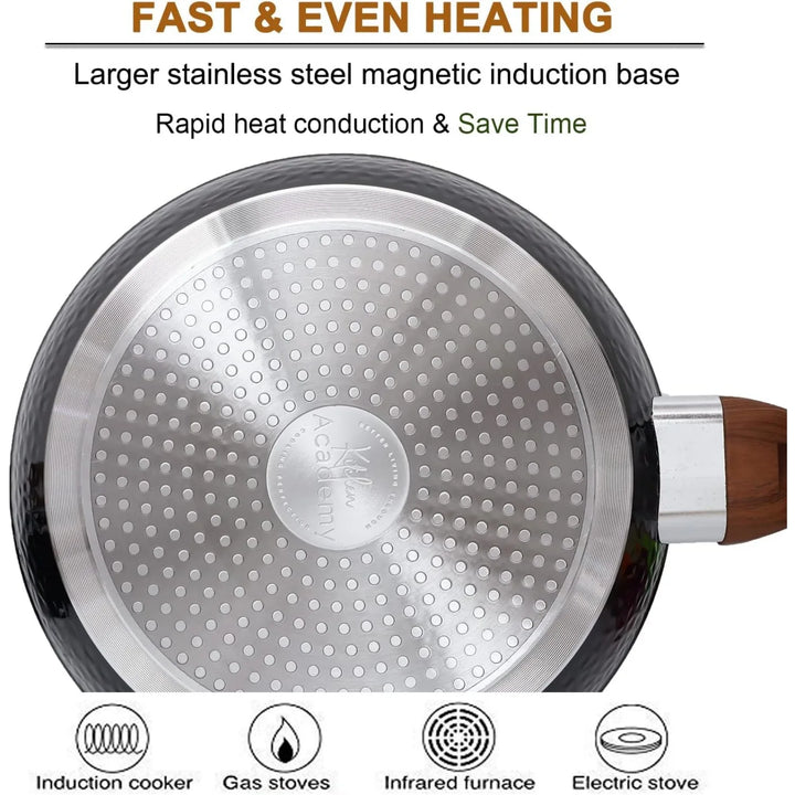 Pots and Pans Set Non Stick - 15 Pcs Black Induction Kitchen Cookware Sets, Healthy Non-toxic Hammered Cooking Pans Set