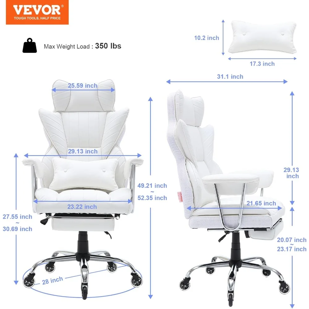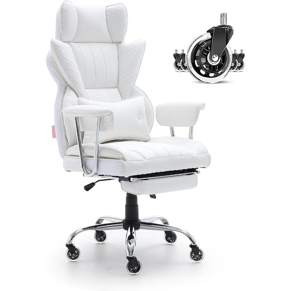 For added relaxation, the retractable footrest allows you to stretch your legs and relieve fatigue. Built with a metal base and a weight capacity of 350 lbs, this chair is both sturdy and supportive, ensuring durability and comfort. The high-quality, skin-friendly PU leather provides a soft, luxurious seating experience, while the silent universal casters protect floors and offer smooth, quiet movement.