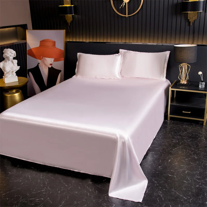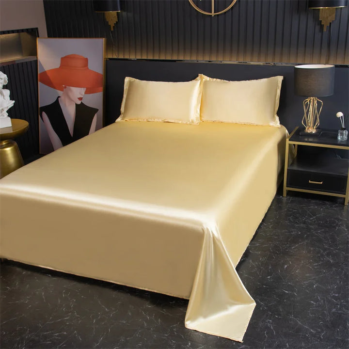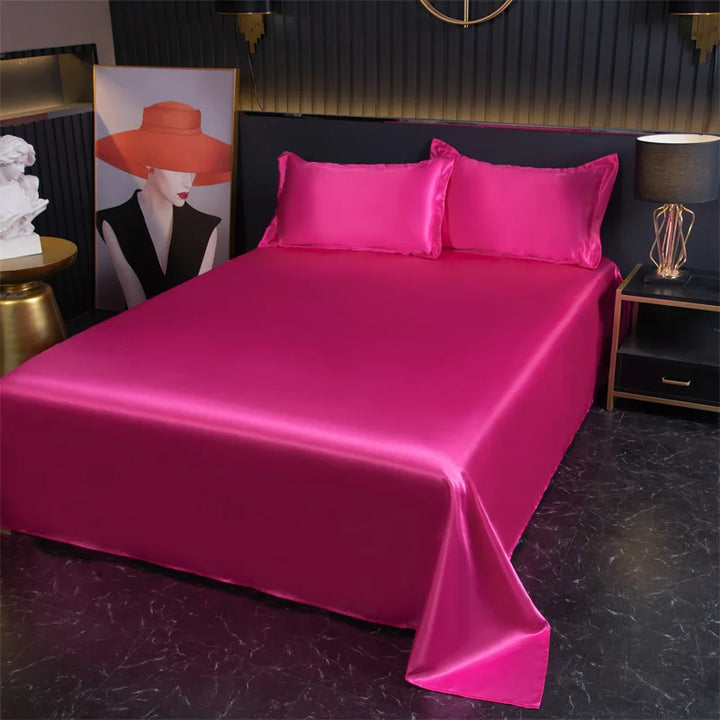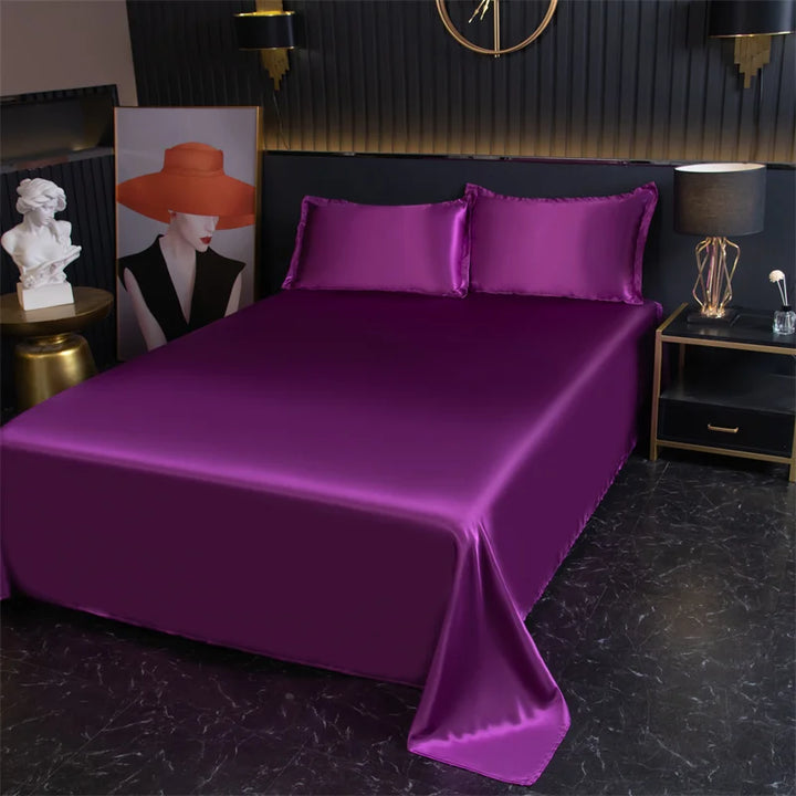 Indulge in the ultimate luxury with the Silky Cooling Bed Sheet Set, designed to provide a smooth, ice silk feel for a cool and comfortable night’s sleep. Made from soft and hypoallergenic satin, these sheets are perfect for sensitive skin, offering a gentle touch and breathable comfort. The set includes a flat sheet and two matching pillowcases, available in Twin and Queen sizes, to suit a variety of bed types. Whether you need a refreshing night's sleep in warm weather or desire a luxurious feel year-round, this cooling sheet set promises both style and relaxation.