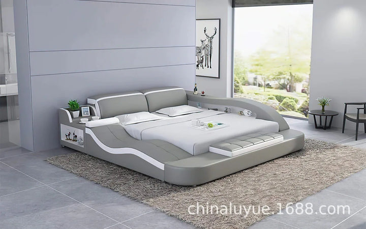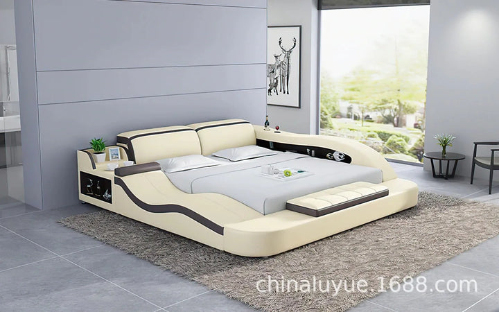 Simplified Master Bedroom Cowhide Soft Multifunctional Tatami Mats Bed – Luxurious Intelligent Wedding Bed