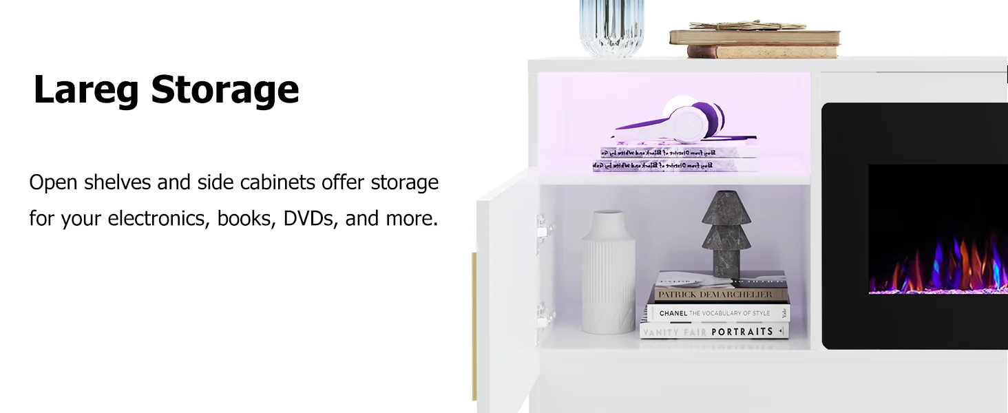 Perfect for those seeking a blend of function and style, this TV stand offers both a beautiful focal point and a practical solution for organizing your entertainment essentials. Ideal for modern homes, this LED light entertainment center is the perfect combination of luxury and convenience.v