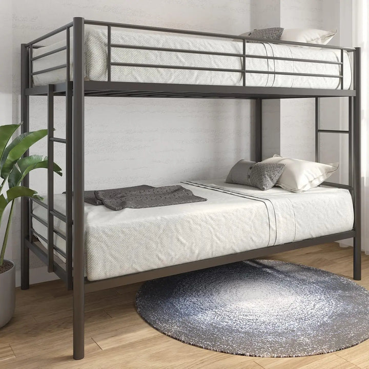 Safety and convenience are top priorities, with two side ladders that offer easy access to the top bunk and ensure stability while climbing. The sleek, modern design suits any decor style, while the metal construction adds a touch of industrial charm and resilience.