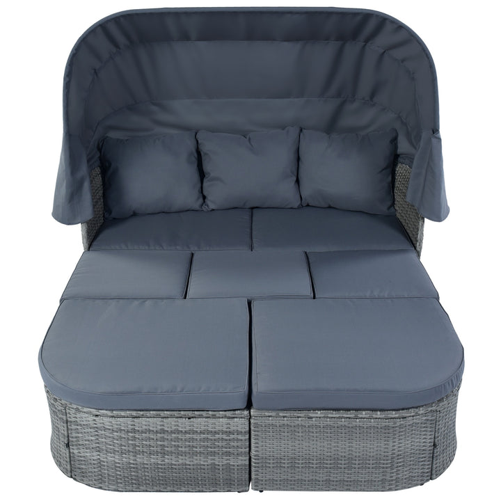 U STYLE Patio Daybed Sunbed with Canopy Wicker Set