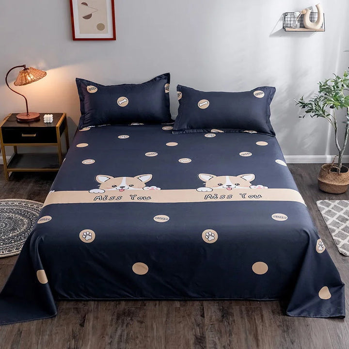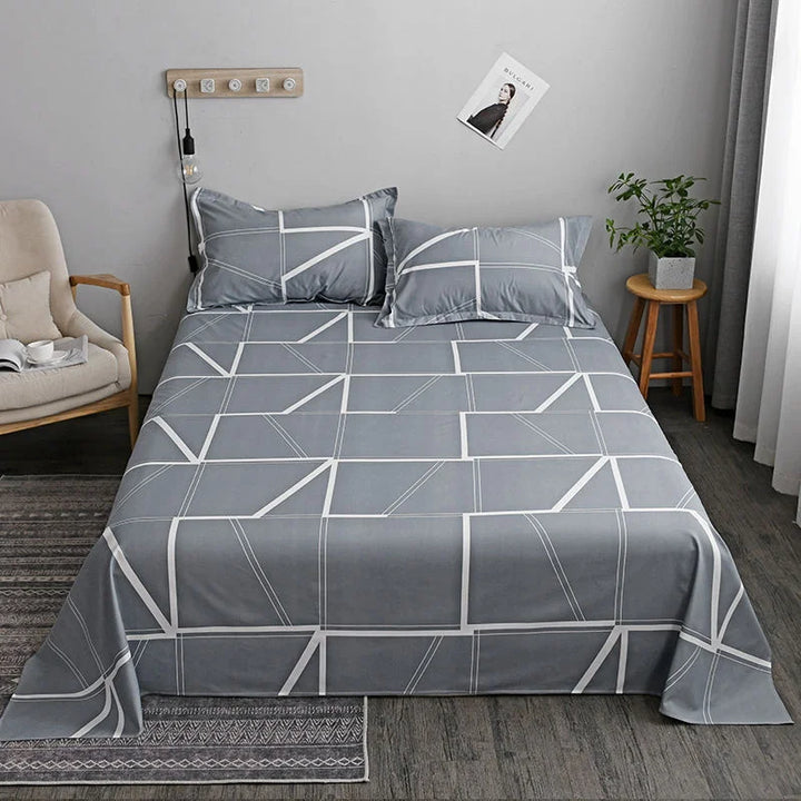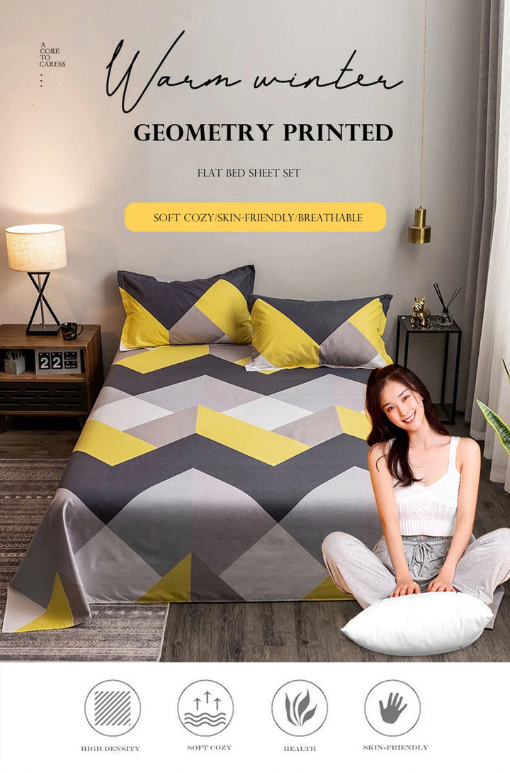 WOSTAR Geometry Printed Flat Bed Sheet Set – Super Cozy Luxury Bedding for Couples, Available in Single, Double, Queen, King Sizes